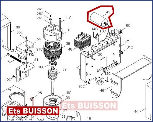 CAME SAV Pièce détachée - Pièce d'origine CAME BX-B/BX-78 - BX608GS - BX708AGS - Condensateur 20 µF avec fils et faston, pièce n°49 Référence CAME : 119RIR278