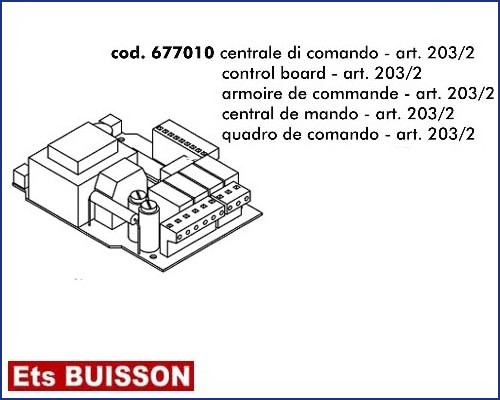 Armoire de commande art. 203/RR (remplace art. 203/2 reference 677010)