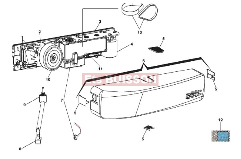 SAV : Pièces détachées Faac vue éclatée moteur porte piétonne 950BM, cliquez sur