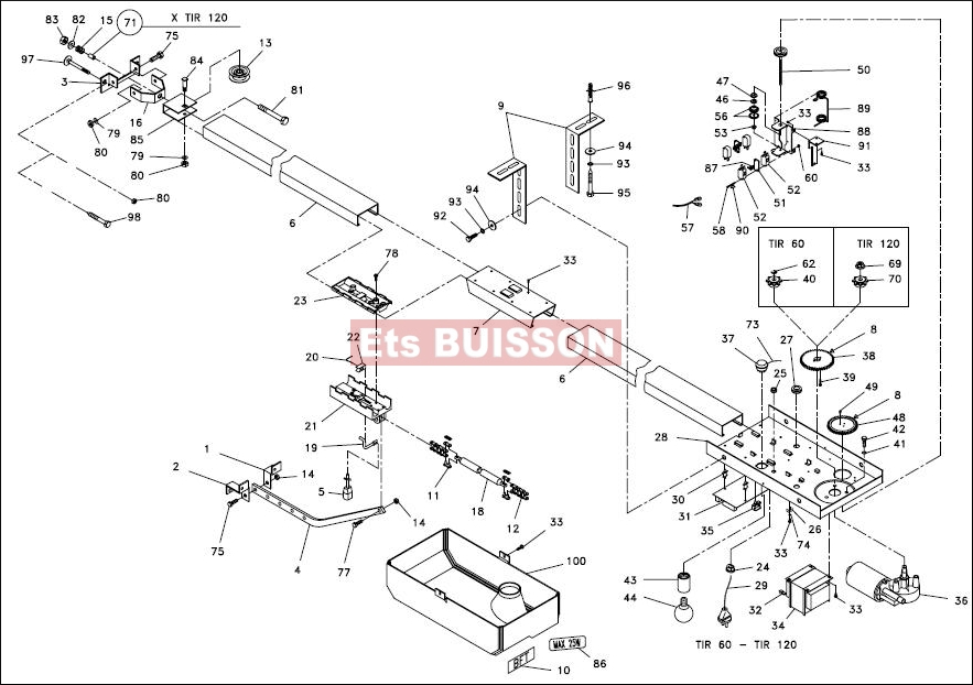 SAV : Pièces détachées BFT vue éclatée moteur porte de garage TIR 60/120, cliquez sur